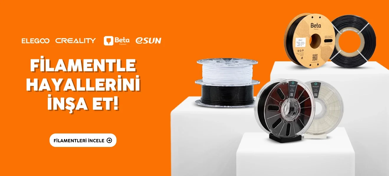 3D Baskı teknolojisinin hızla geliştiği bu çağda, yaratıcılığınızı sınırlamadan projelerinizi gerçeğe dönüştürmek için ihtiyacınız olan her şey FilamentMarketim’de. FilamentMarketim olarak, 3D Yazıcı kullanıcılarının beklentilerini karşılayacak geniş bir ürün yelpazesi sunuyoruz. PLA, ABS, PETG, esnek ve ahşap filamentlerden özel 3D yazıcılara kadar geniş bir ürün çeşitliliği ile sizleri destekliyoruz. Yeni başlayanlar ve profesyonel projelere hayat verenler için en uygun ürünler, rekabetçi fiyatlarla FilamentMarketim çatısı altında listeleniyor.
