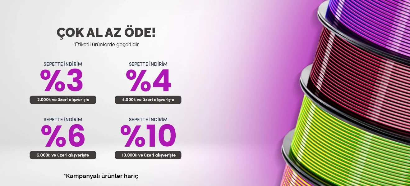 FilamentMarketim, her türlü 3D baskı ihtiyacınıza yönelik geniş ürün yelpazesi, güvenilir alışveriş deneyimi ve müşteri odaklı hizmet anlayışıyla sektörde öne çıkan bir platformdur. Online alışveriş kolaylığı sayesinde ihtiyacınız olan ürünlere hızlıca ulaşabilir, güvenilir kargo hizmetimizle siparişlerinizi sorunsuzca teslim alabilirsiniz. 3D baskı dünyasında yeni olanlar için rehberlik eden içeriklerimiz, profesyonel kullanıcılar için ise kaliteli ürün seçeneklerimiz ile Filamentmarketim.com, hayal gücünüzü gerçeğe dönüştürmek için her zaman yanınızda.