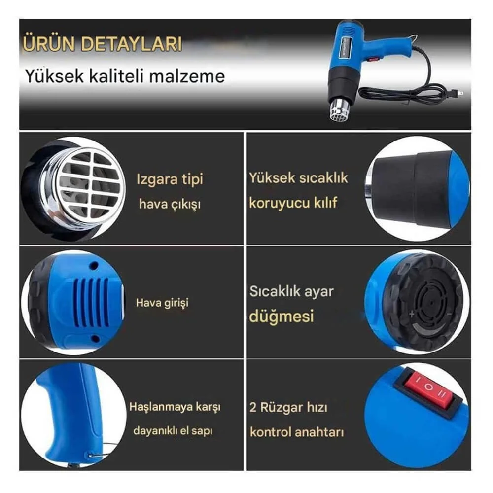 ✅ Çok Yönlü Kullanım: Plastik şekillendirme, boya sökme, PVC büzme, buz çözdürme, lehimleme ve daha fazlası için uygundur.