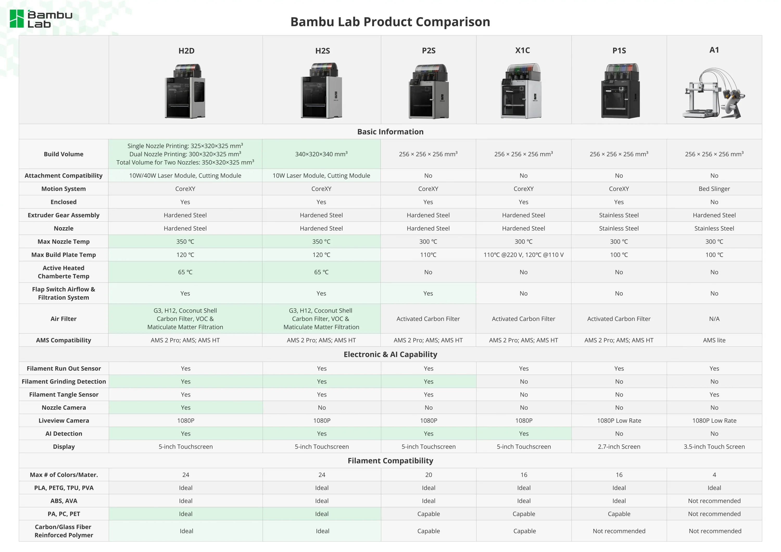 | Desteklenen filamentler | PLA, PETG, ABS, ASA, TPU, PLA Desteği, PLA/PETG Desteği, ABS Desteği, PET, PA, PC, PVA, PLA CF, PETG CF, ABS GF, ASA CF, PA6-CF, PA6-GF, PAHT CF, PPA CF, PET CF |
