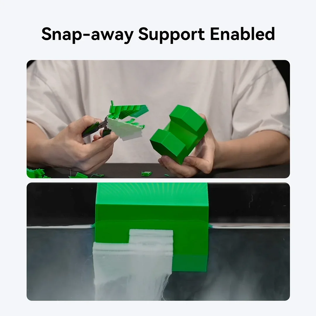 CFS, kolayca koparılabilen veya suyla çözünebilen farklı bir malzemeden destekler sunabilir. Bu sayede, ortaya çıkan 3D modelde hiçbir destek izi görünmez.