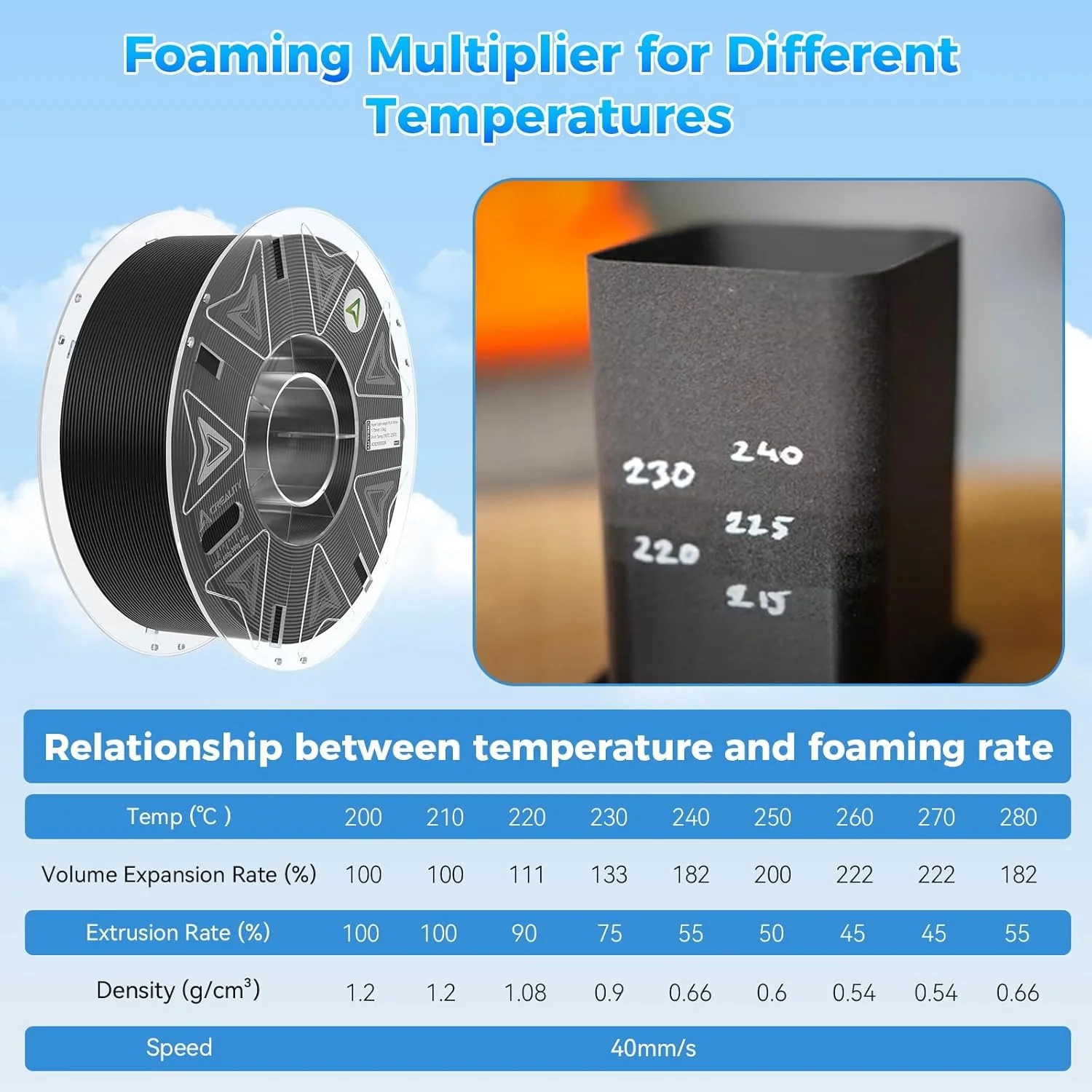 • Crealiy LW PLA filamentinin köpürme genleşmesi, 2 kata kadar malzeme akış hızıyla baskı yapmanıza olanak tanır ve daha az malzemeyle daha fazla baskı yapmanızı sağlar. Bir rulo LW PLA, 2,2 rulo normal PLA'ya eşdeğerdir.