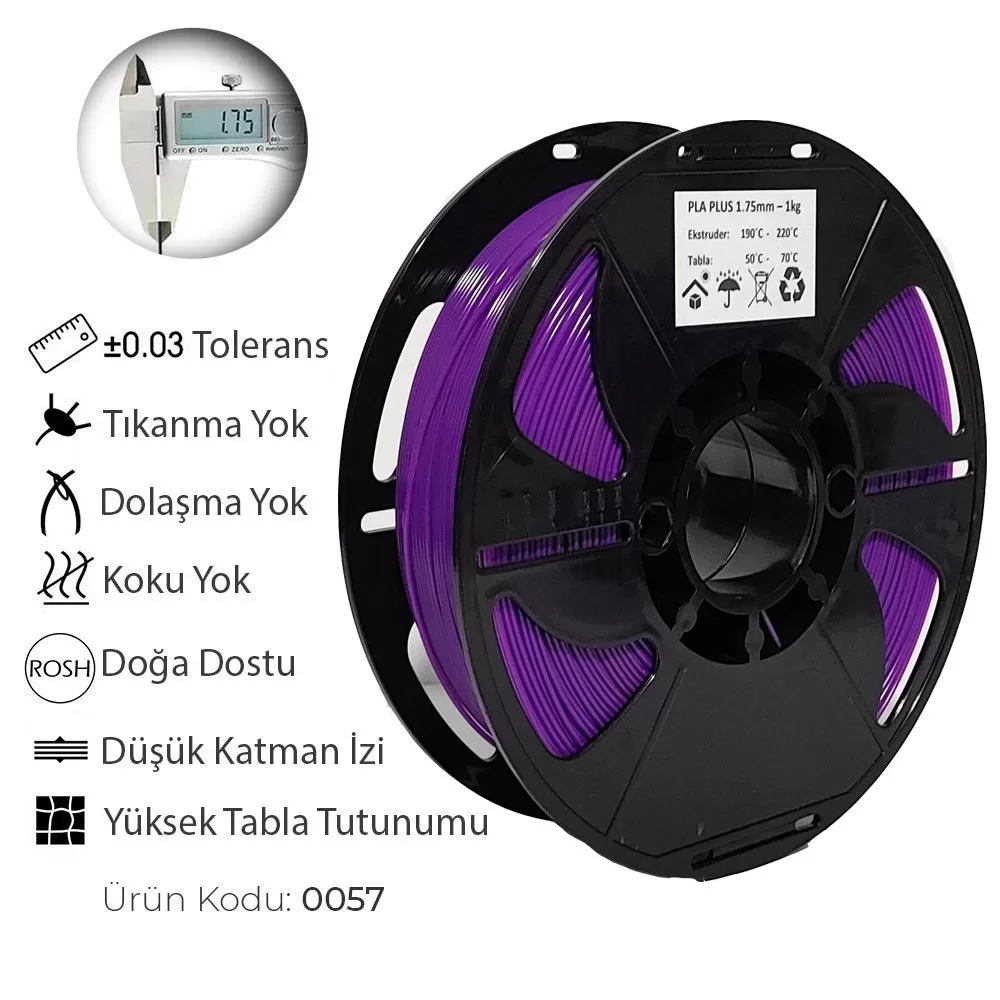 Yakın toleranslı 1,75 mm çapta olup homojen yapı ve stabil ekstrüzyon için sıkı üretim prosesleri uygulanır.