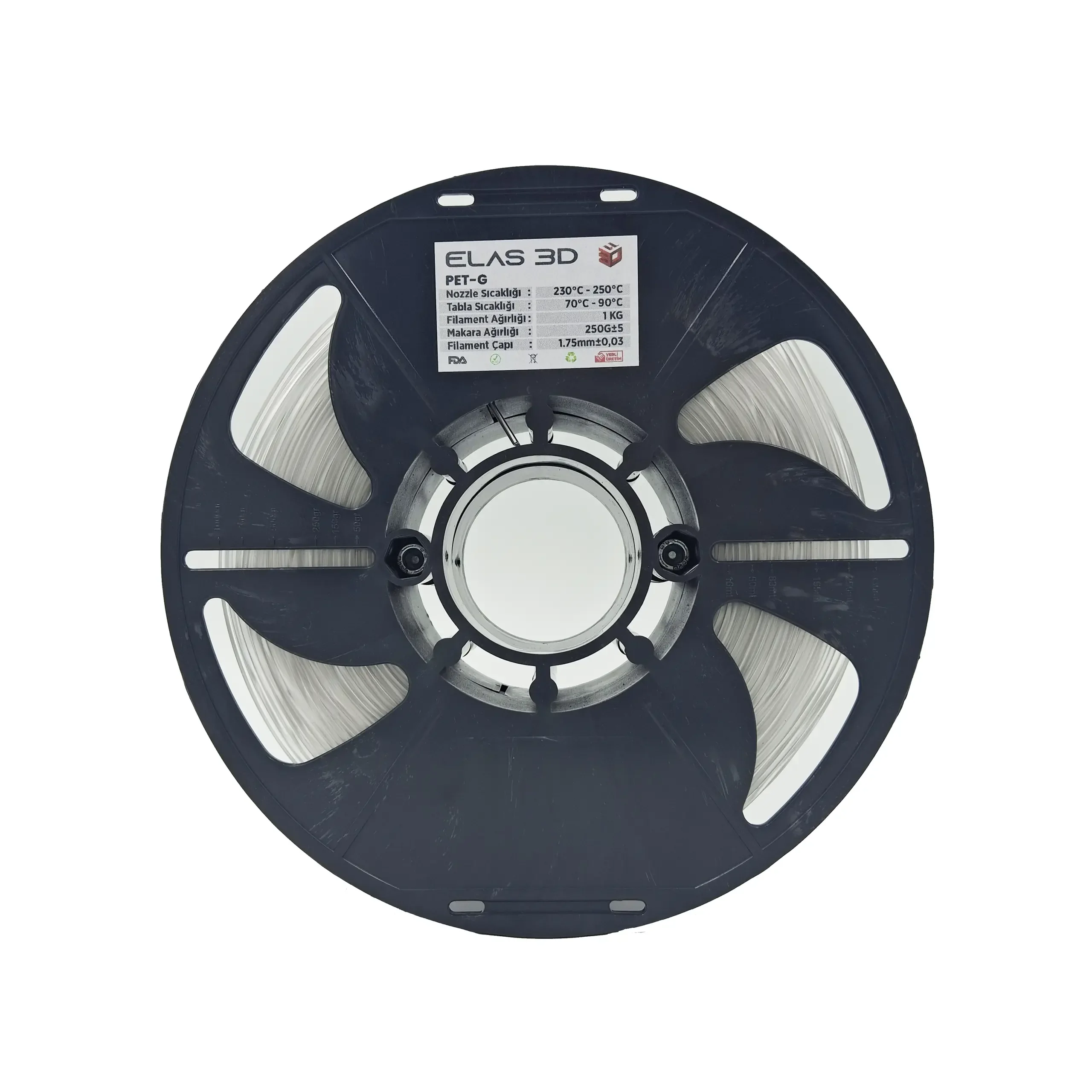 Elas PET‑G filament, Polietilen Tereftalat Glikol (PET‑G) temelli, yarı esnek, dayanıklı ve mühendislik sınıfı 3B baskı malzemesidir.