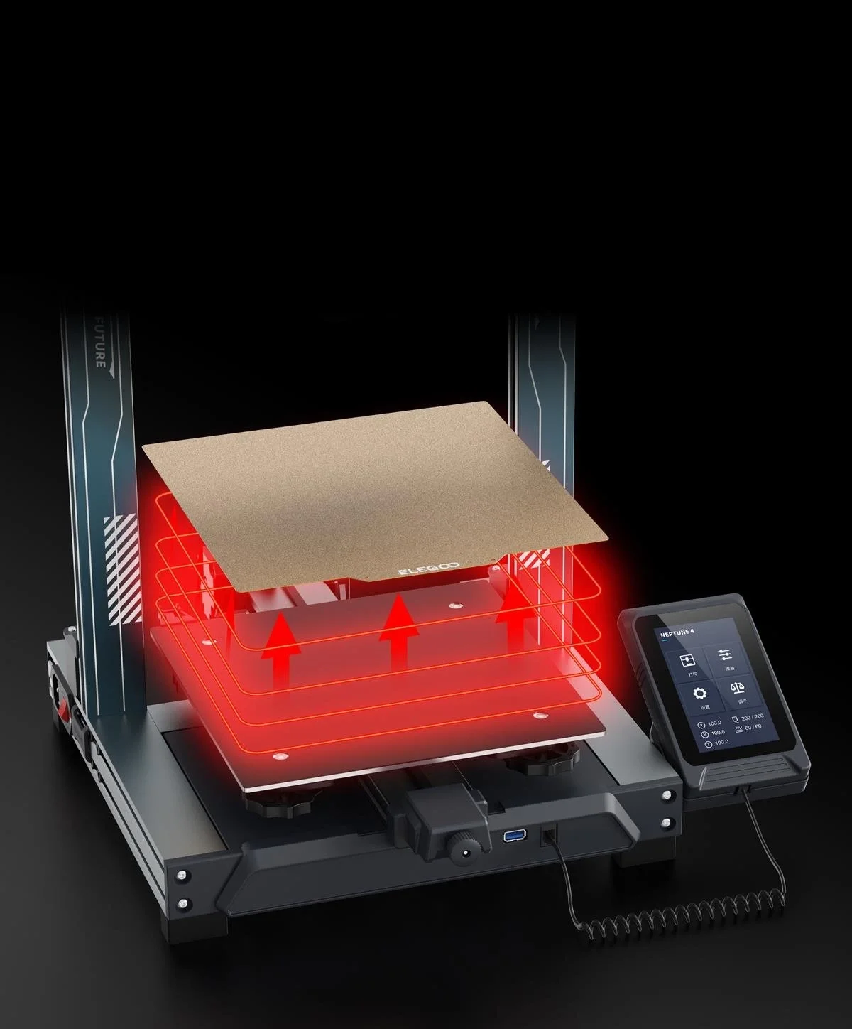 ELEGOO Neptune 4, daha hızlı komut işleme ve yürütme için ARM 64-bit 1.5G ana frekans dört çekirdekli işlemci ile Klipper sabit yazılımı önceden yüklenmiş olarak gelir ve daha yüksek verimlilik için 500 mm/sn'ye varan etkileyici bir hızda yazdırmasını sağlar . 8G RAM, hızlı yazdırma için geniş depolama alanı sağlar.