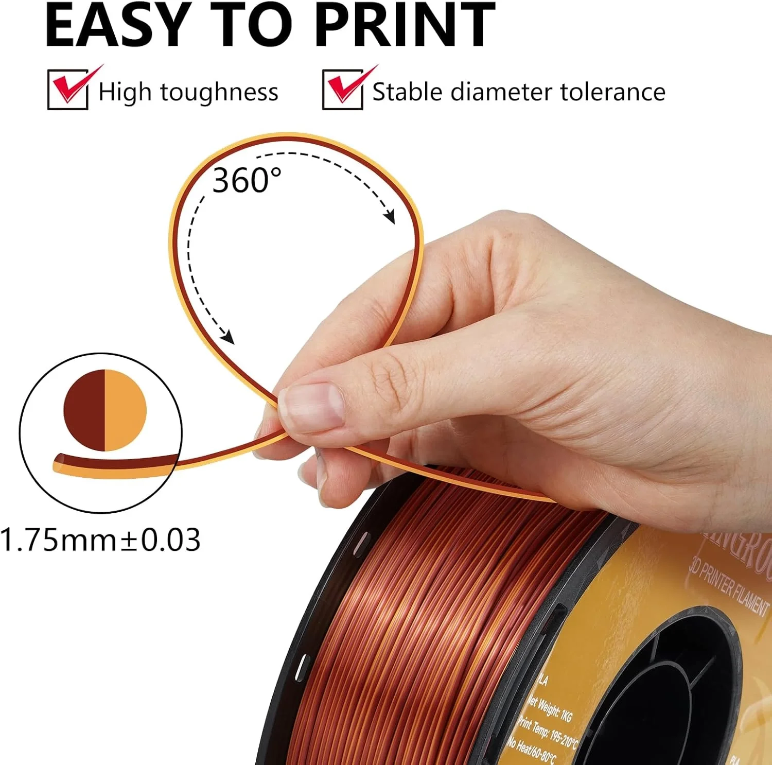 PLA Silk çift renk renkleriyle benzersiz, göz alıcı tasarımlar için Kingroon SILK PLA filamenti tek tercih ...
