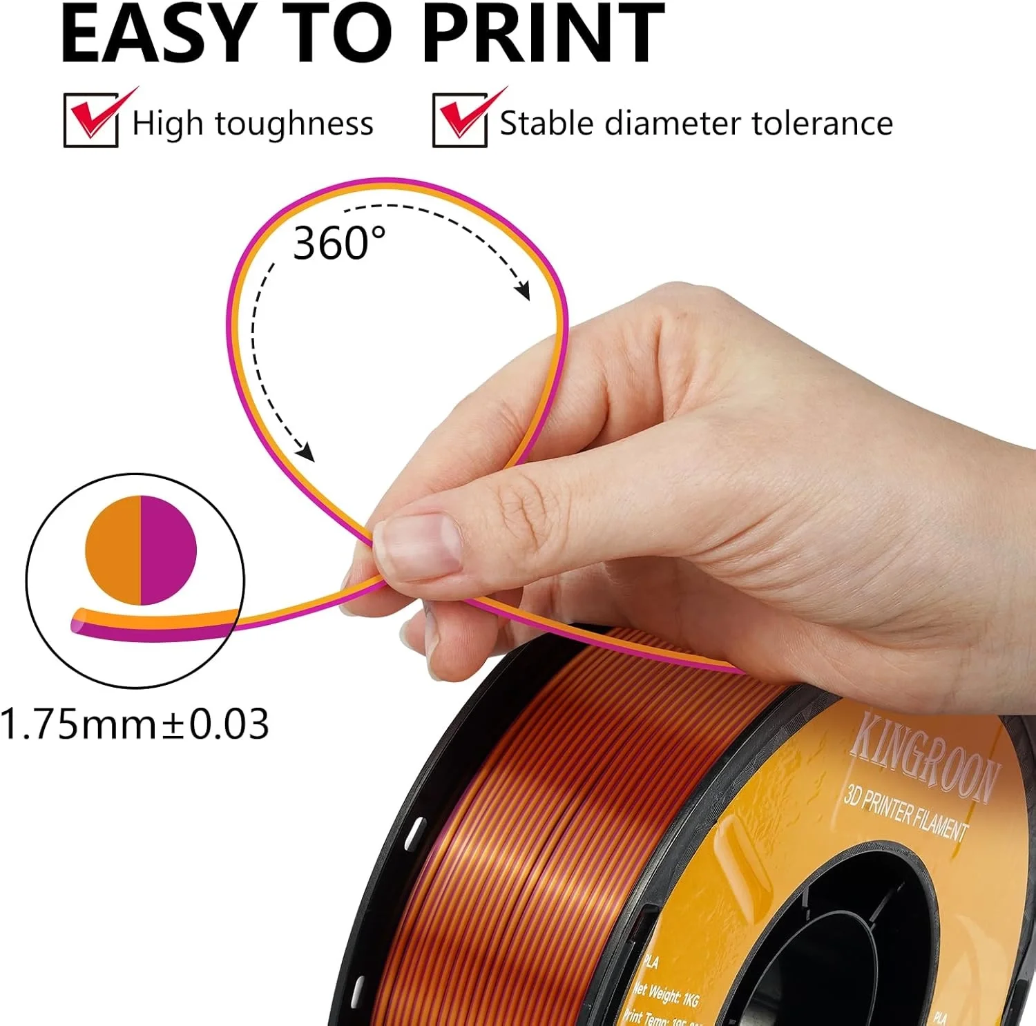 PLA Silk çift renk renkleriyle benzersiz, göz alıcı tasarımlar için Kingroon SILK PLA filamenti tek tercih ...