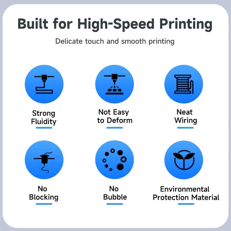 1. **Yüksek Hızlı Baskı:** RAPID PLA+ filamanımız, 3D baskı sırasında hızlı erimeye ve düzgün akışa olanak tanıyan gelişmiş akış özelliklerine sahiptir ve bu da 500 mm/s'ye kadar yüksek bir baskı hızı sağlar. Bu özellik, baskı projelerinizi kaliteden ödün vermeden hızlı bir şekilde tamamlayabilmenizi sağlar.