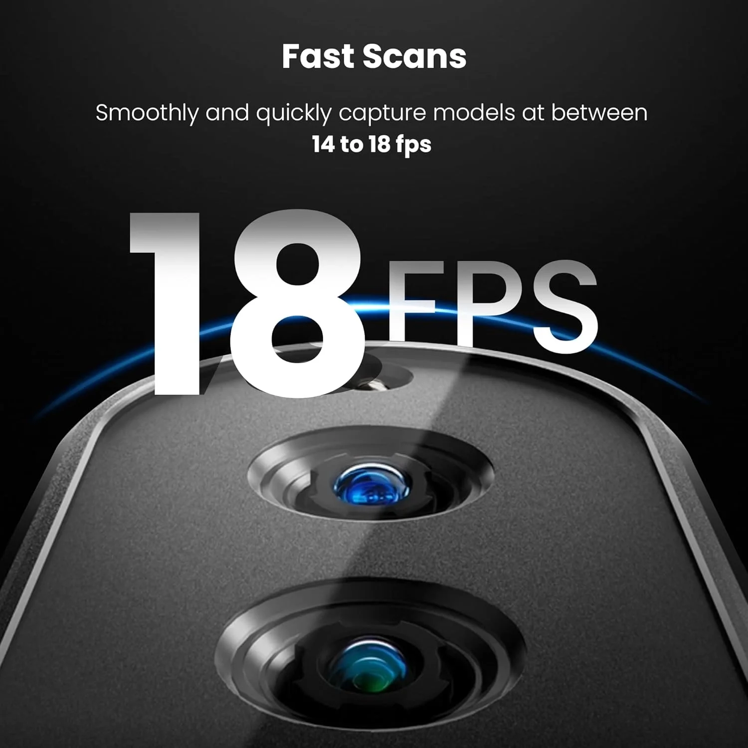 Revopoint INSPIRE 3D tarayıcının 0,2 mm'ye varan mühendislik sınıfı doğruluğu ve 14 fps ila 18 fps tarama hızları ile kullanıma hazır 3D modelleri hızla sunan bir 3D modelleme sihirbazı olun.