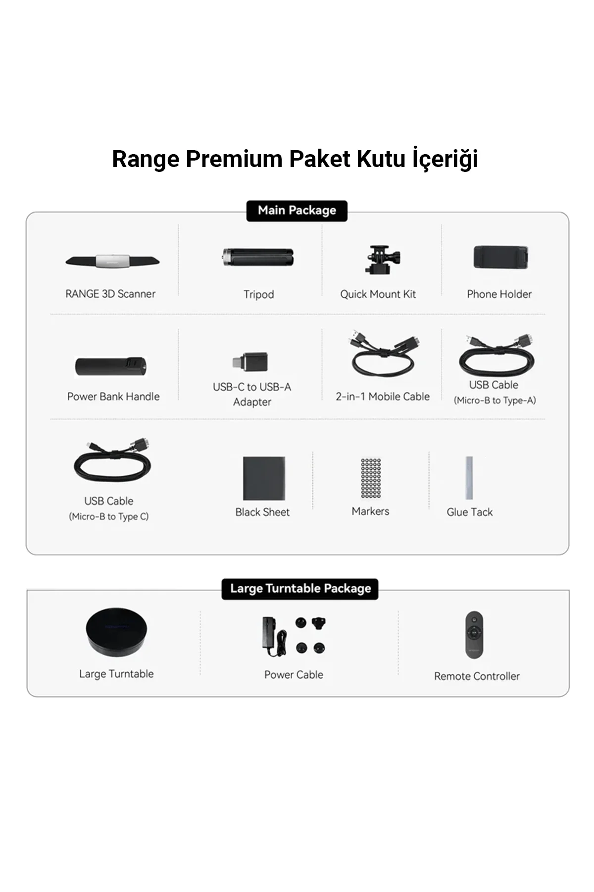 ♦ Çok Yönlü TaramaRANGE'ı 2 saate kadar güçlendiren Güç Bankası Sapı ile elde taşınırken tam tarama özgürlüğünün keyfini çıkarın. Ayrılabilir tripod sayesinde RANGE, döner tablalı bir tarayıcı veya dış mekanda taramaya hazır tamamen taşınabilir bir el tipi tarayıcı arasında sorunsuz bir şekilde geçiş yapabilir.