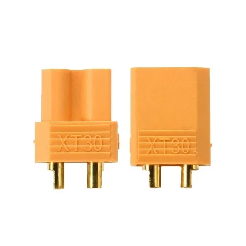 XT30 düşük direnç gösteren 30A e kadar yüksek akım taşıma kapasitesine sahip metallerden üretilmiş bağlantı konnektörleridir. Dişi erkek çift olarak gelir. Birbirlerine sıkı şekilde tam otururlar. Elektriksel bağlantı sorunsuz bir şekilde sağlanır. Ters bağlantıyı engelleyecek şekilde fiziksel plastik kutu tasarımı vardır. Yüksek akım kapasiteli Lipo bataryalarınız ile kullanıma uygundur.