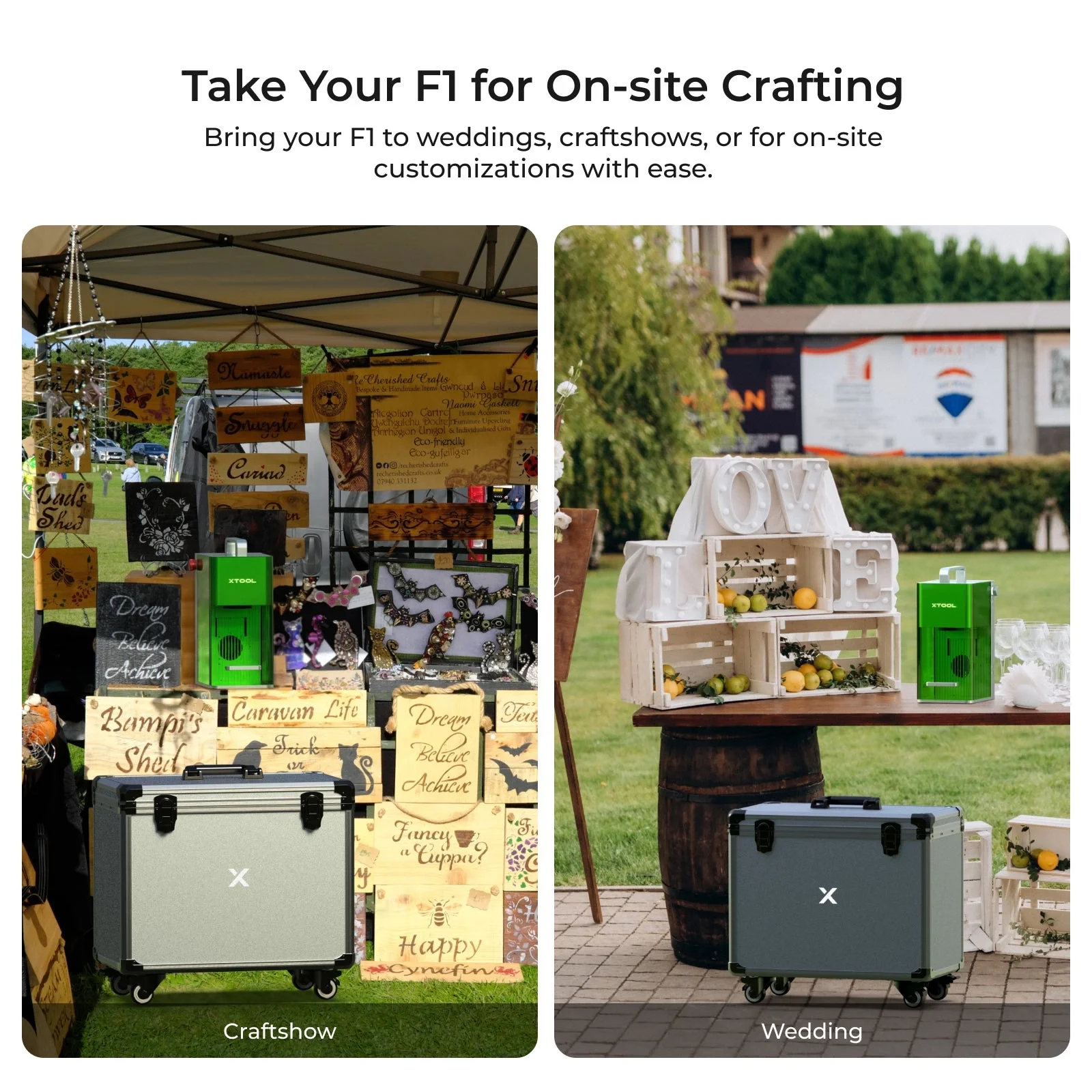 xTool F1 & F1 Lite Rolling Hard Case, xTool F1 ve F1 Lite lazer kesim makinelerini güvenli bir şekilde taşımak ve saklamak için özel olarak tasarlanmış dayanıklı bir taşıma çantasıdır. Bu sert kutu, makinenizin ve aksesuarlarının korunmasını sağlayarak, taşıma sırasında zarar görmelerini engeller.