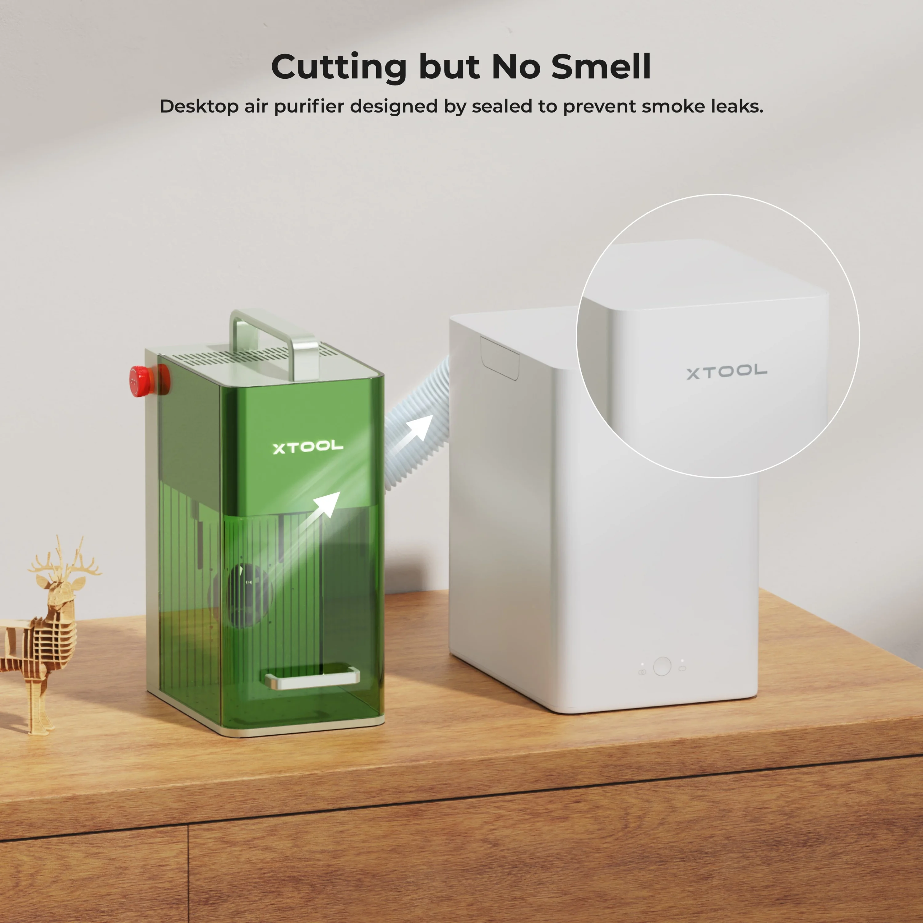 xTool Desktop Air Purifier, lazer kesim ve gravür makineleriyle uyumlu olarak tasarlanmış bir masaüstü hava temizleyicisidir. Üç katmanlı filtrasyon sistemi ile 0.3 mikrometreye kadar olan zararlı partiküllerin %99.97'sini filtreleyerek temiz bir ortam sunar.